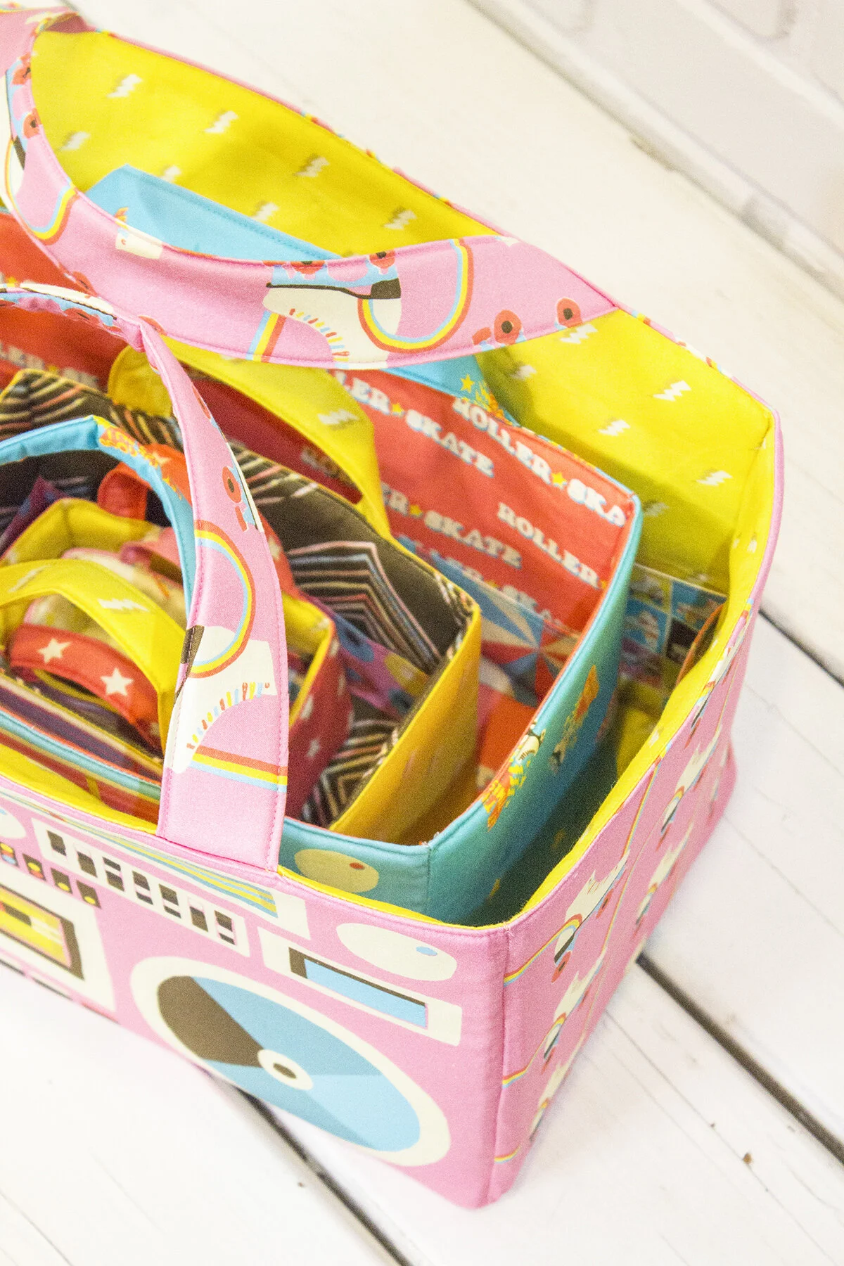 Once you've made one, other than the dimensions, all the instructions are exactly the same! The hardest part will be deciding what to fill them with! Which if you're like me, that would be with more sewing projects and fabric!