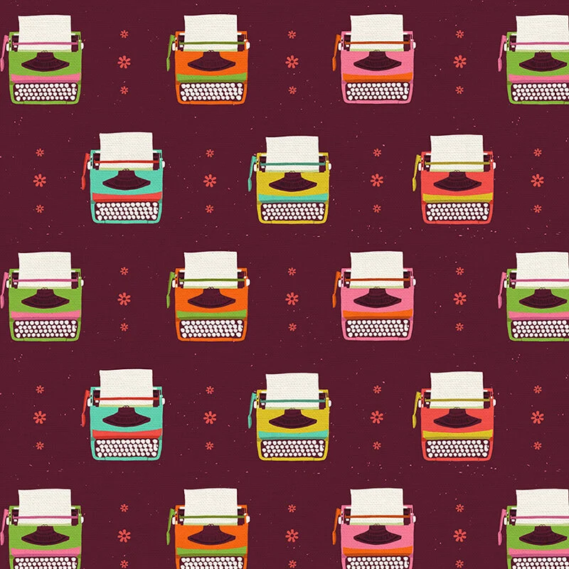 This retro, made modern, collection is not only about all things found in a retro office, but it's also about the women who were the glue that held it all together, like my mom! Her name starts with an A and it wasn’t by accident it ended up smack dab in the middle of the panel! You’ll notice that most of these illustrations are from the panel, except for Dolly and the typewriter with the “What would Dolly Do?”. I made those into promo stickers to send out to stores! Also please note: all these swatches are zoomed in to show off their detail. To see the scale as you would on the fabric, zip to the bottom of this post.